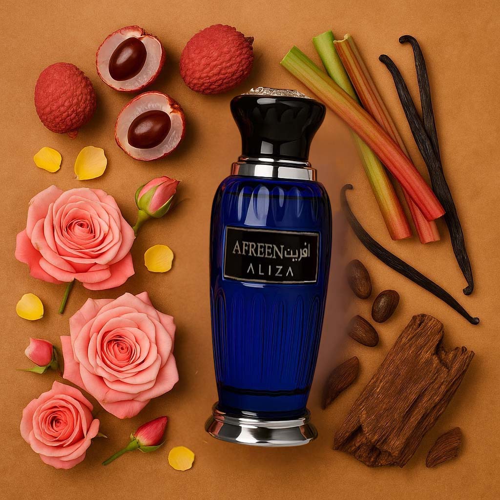 Afreen is the scent of a dreamer who leads with heart and style. It's for the one who walks into a room and creates an atmosphere-soft yet unshakable, charming yet mysterious. A modern classic in every sense.