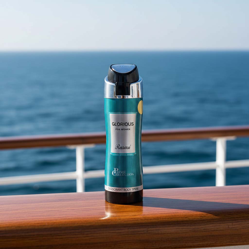Rasasi Deo Prime Glorious is crafted for women who want freshness with a touch of bold elegance. From the first spray, it opens with a sparkling burst of sweetness—clean, bright and full of confident energy.